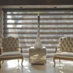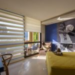 A combinação dos tecidos translucido e opaco valoriza a visibilidade externa e a entrada de luminosidade no ambiente.