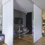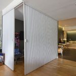 É ideal para instalação em espaços abertos ou com portas de vidro, permitindo melhor aproveitamento do espaço e facilidade de abertura, separando ou formando ambientes.